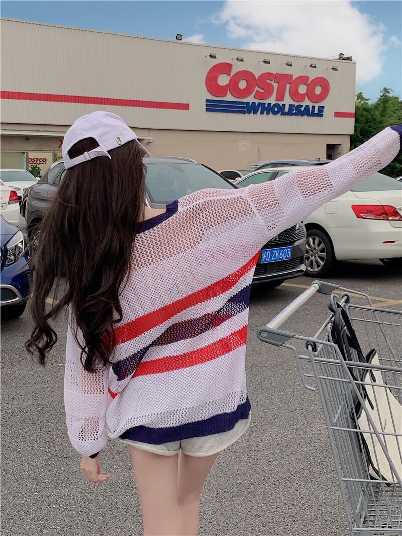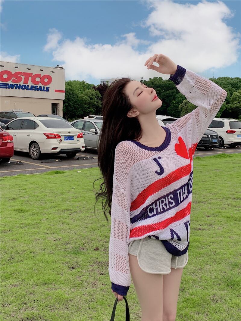 レッドジャカードセーター レディースサマー薄手ルーズトップス ロング 夏物 シルク フラワークラフター4698321001