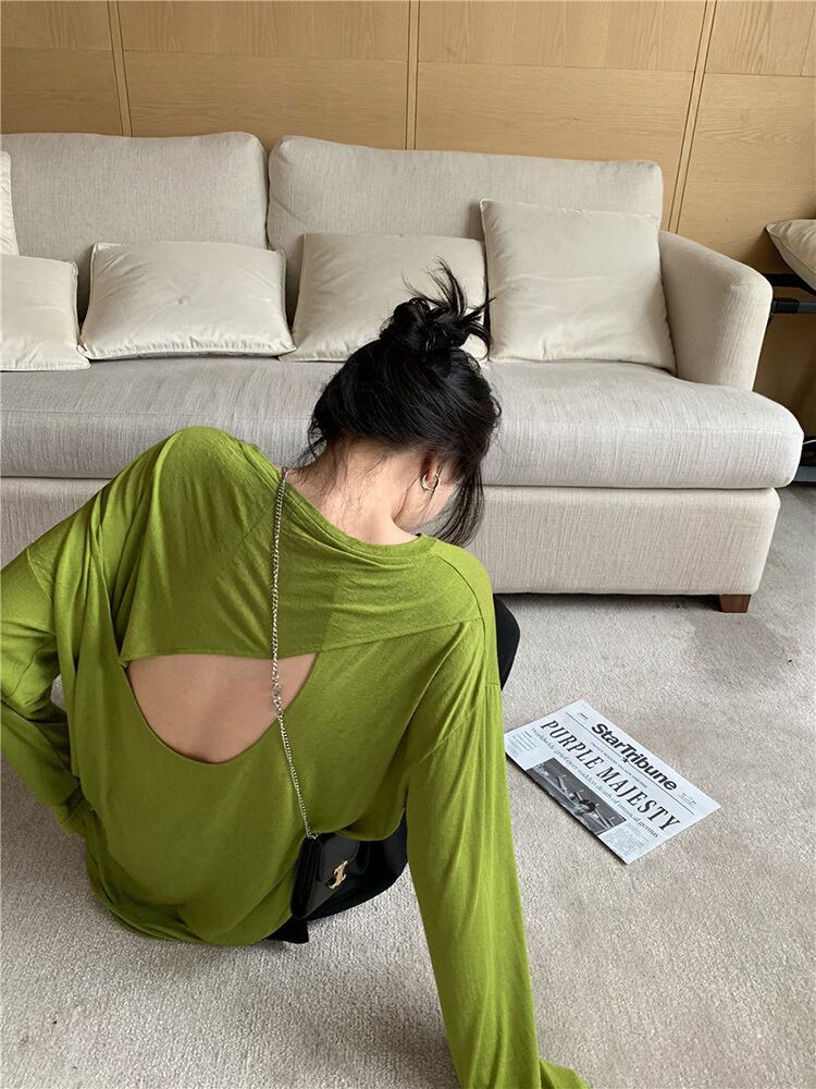 グリーンTシャツ サマー薄手レッドホルタールーズバックトップス ロング 夏物 フラワークラフター70505721955