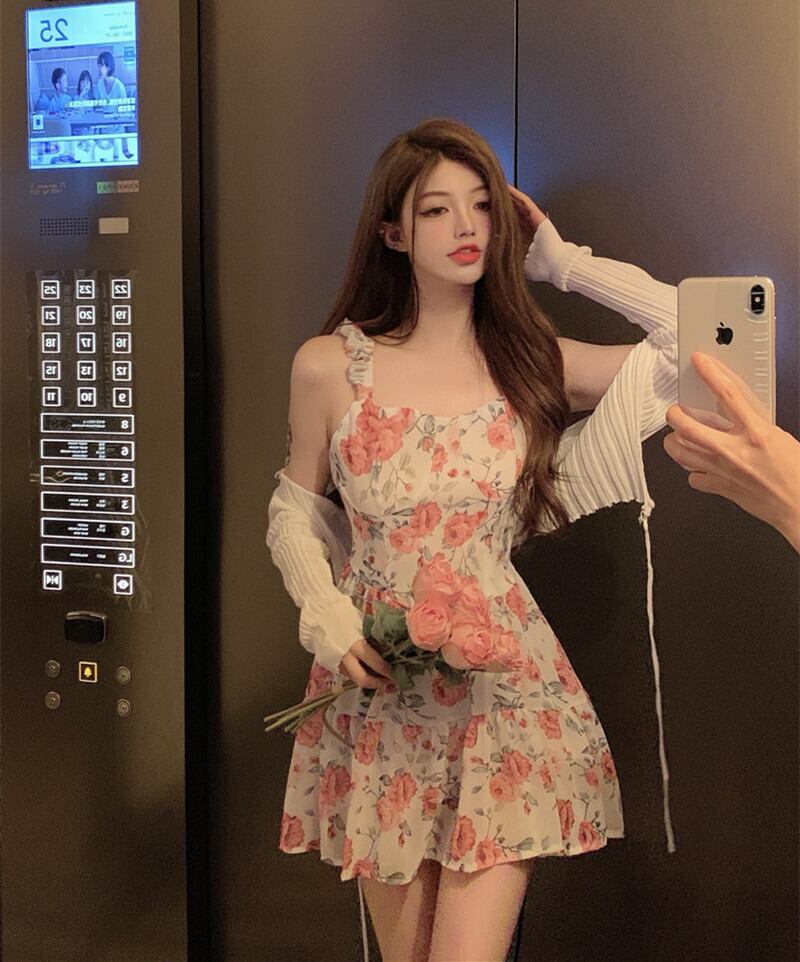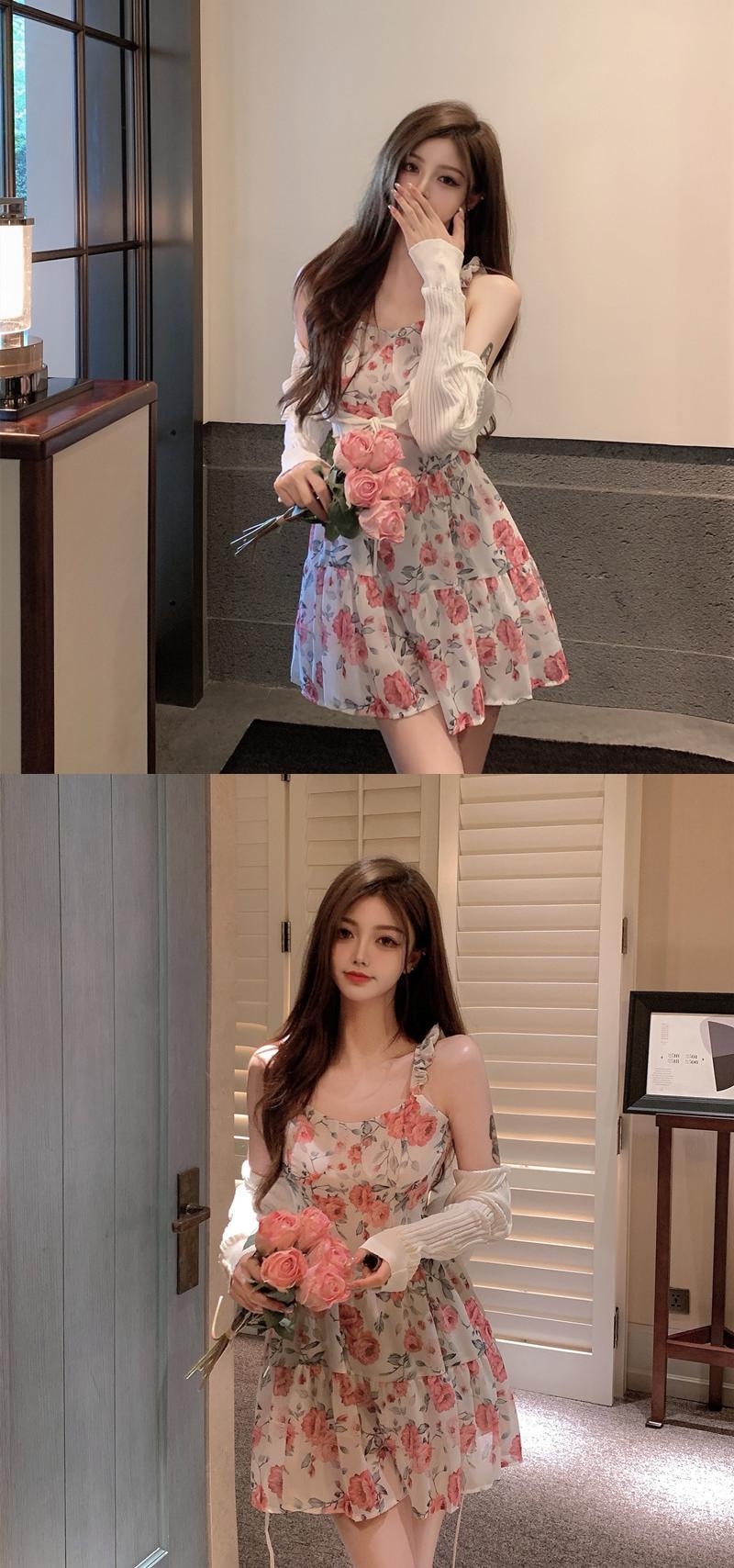 シフォンフローラルドレス サマーウェスト薄手Aラインショートスカート 夏物 花柄 フラワークラフター52095135557