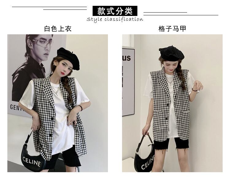 色:ホワイトトップシングルピース,チェック柄ベスト