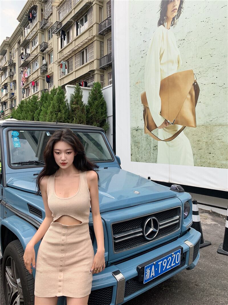 カーキニットドレス サマーウェストスカート 夏物 フラワークラフター95312213591