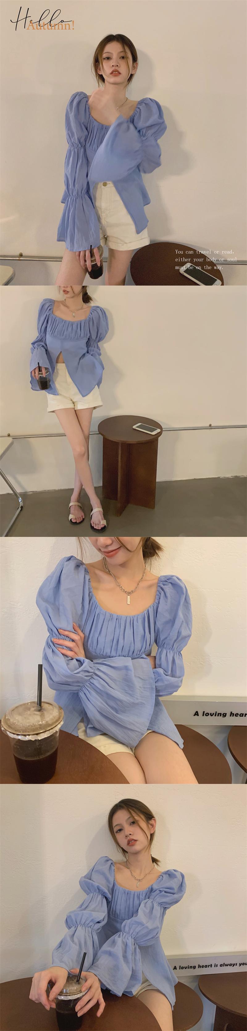 ブルースリーブシャツ サマープリーツ薄手トップス ランタンスリーブ 夏物 フラワークラフター23409677410
