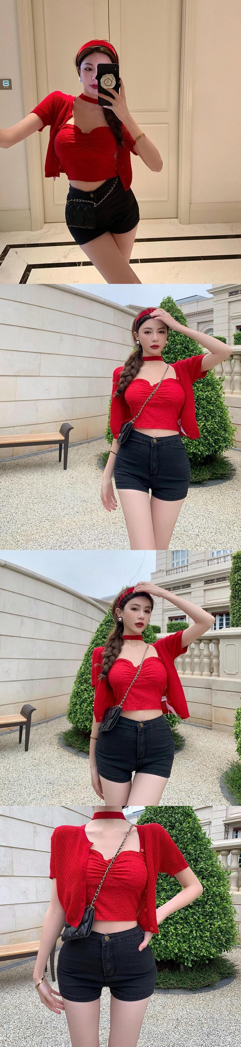 色:黄色のカーディガンワンピース,レッドカーディガンワンピース,シングルイエローチューブトップ,シングルレッドチューブトップ