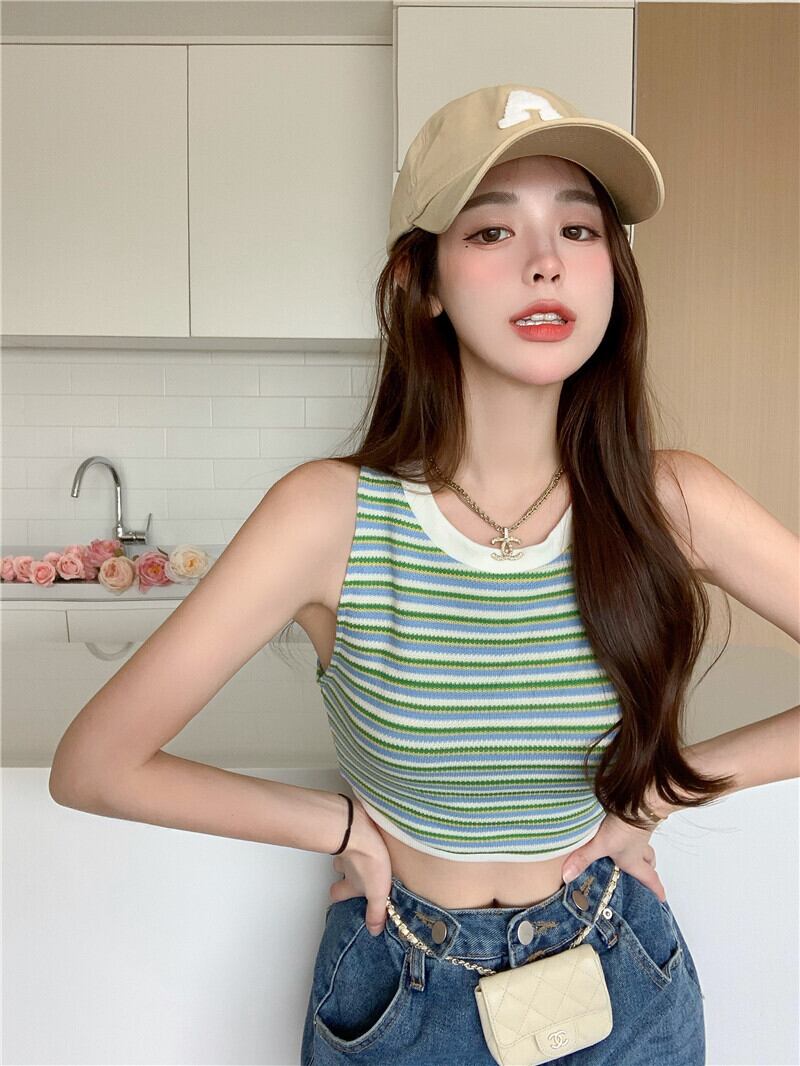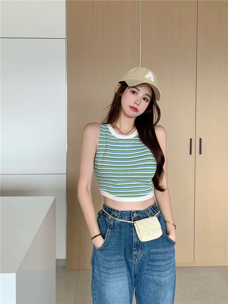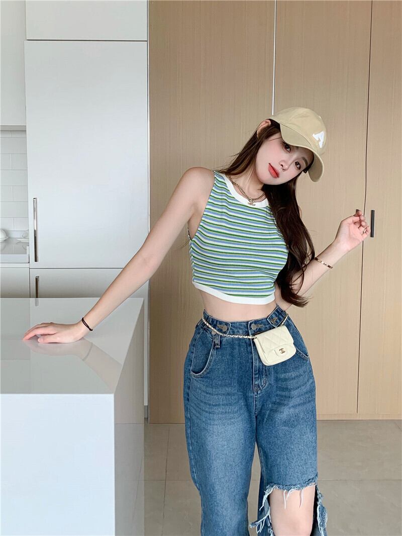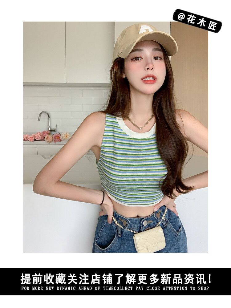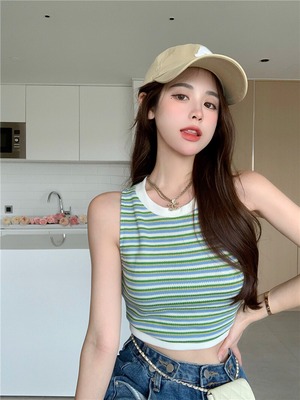 ストライプニットサマーショートトップス 夏物 フラワークラフター5016547971