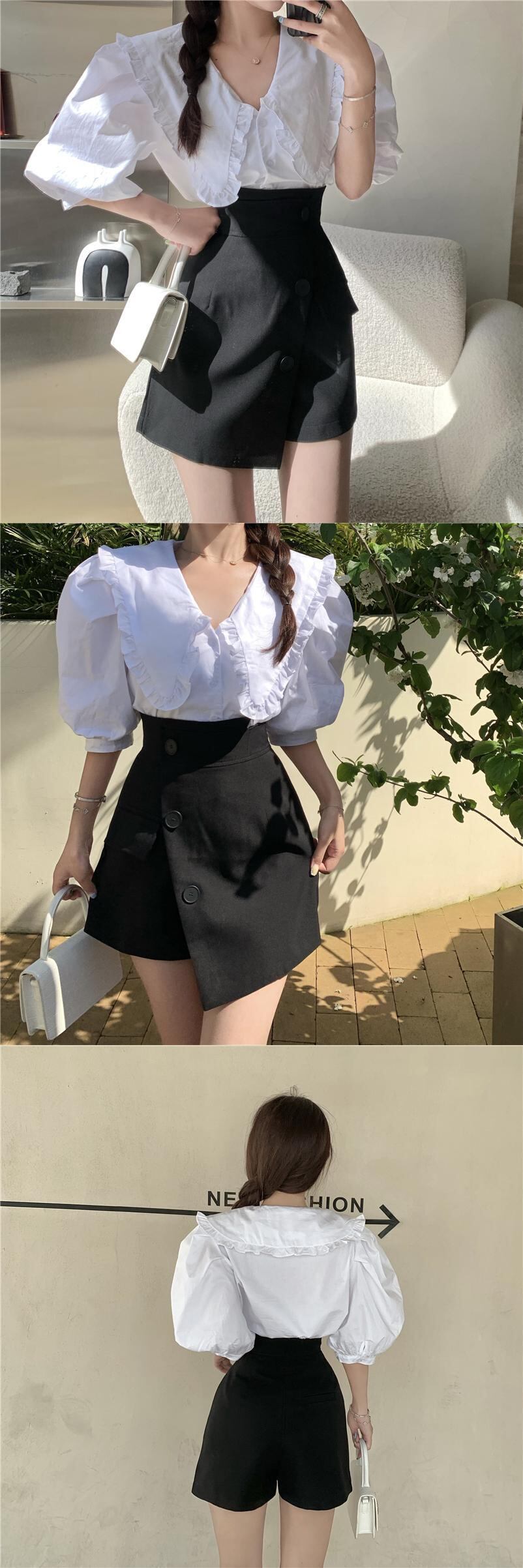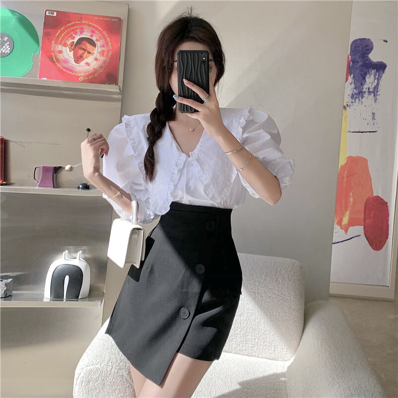 ホワイトカラーシャツ サマールーズスタイルスリーブトップス 夏物 フラワークラフター51332383603