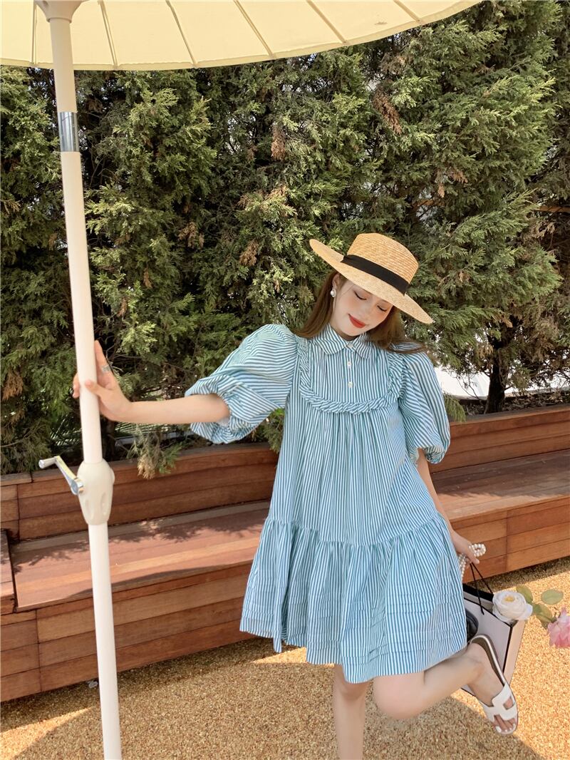 ストライプスリーブドレス サマールーズスカート 夏物 フラワークラフター5291597950