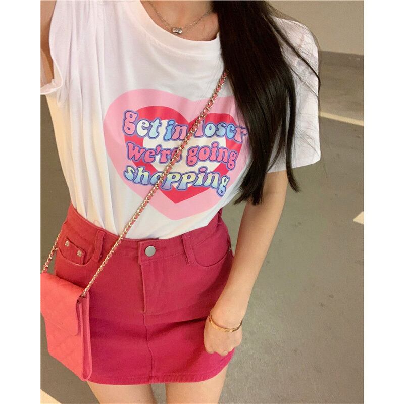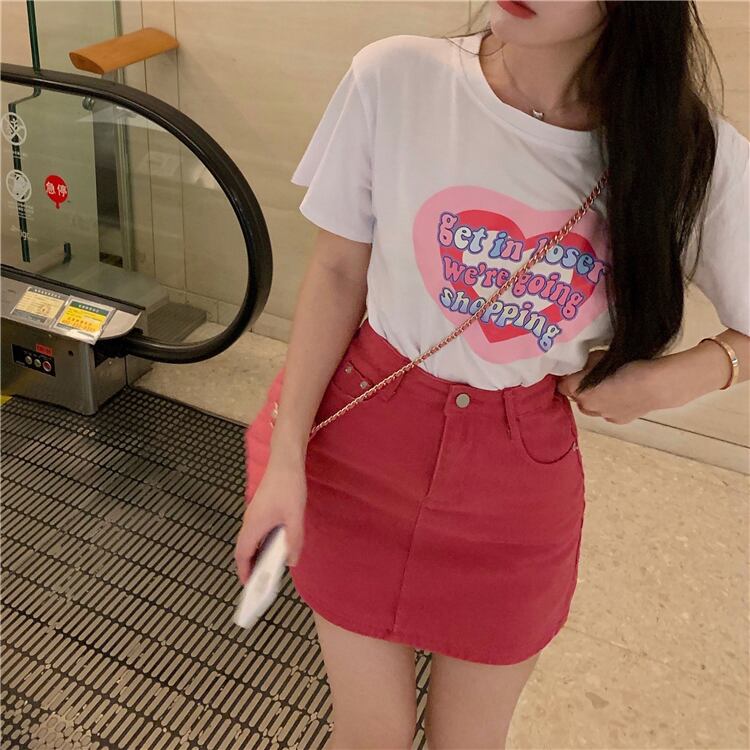Tシャツ サマーレッドプリントルーズトップス 夏物 フラワークラフター34109812258