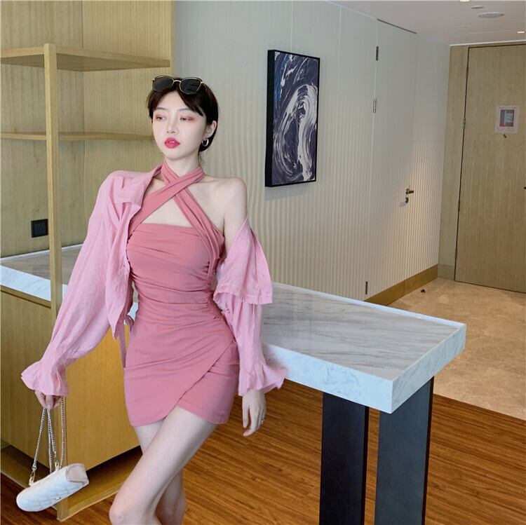 ホルタードレス サマーウェスト薄手スカート ピンク 夏物 フラワークラフター44305383938