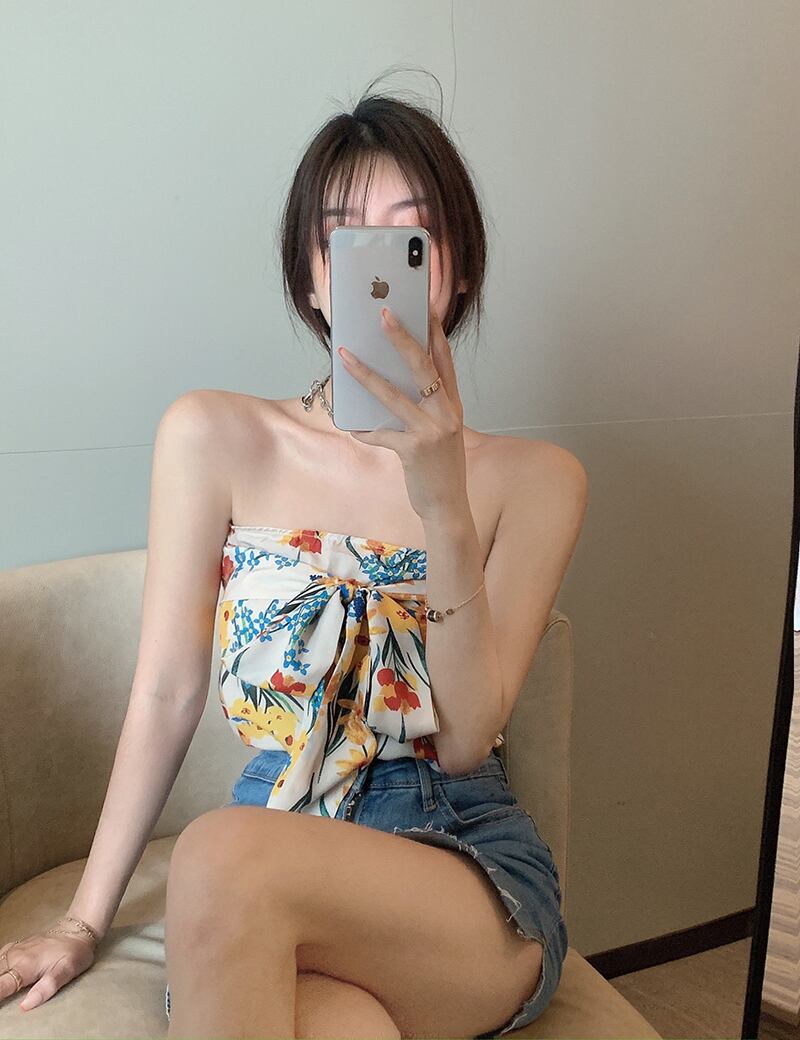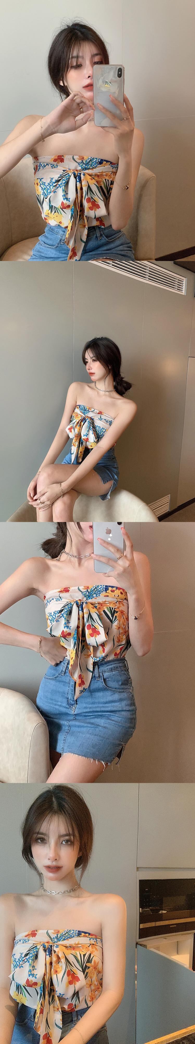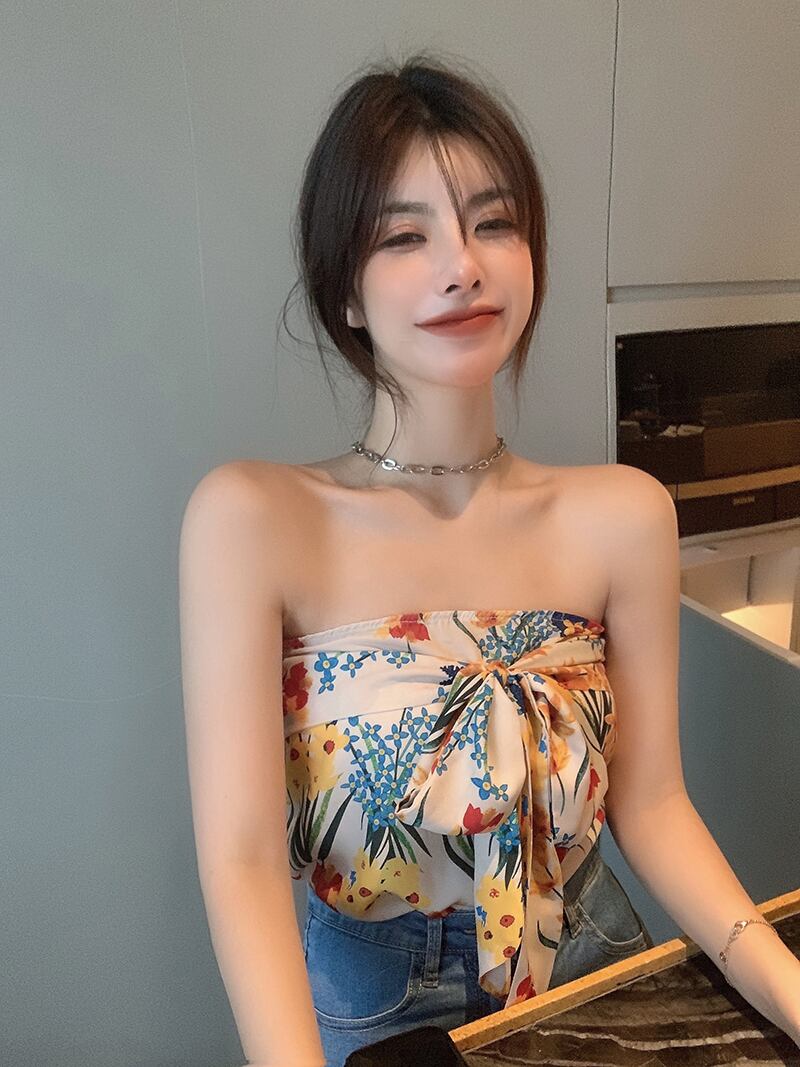 フローラルトップス ストラップレスサマースリムストラップ ショート 夏物 花柄 フラワークラフター91056148091