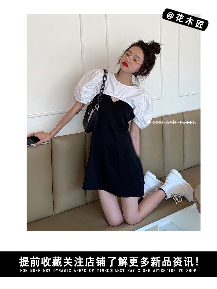 色:白いショールのワンピース,黒いキャミソールのワンピース