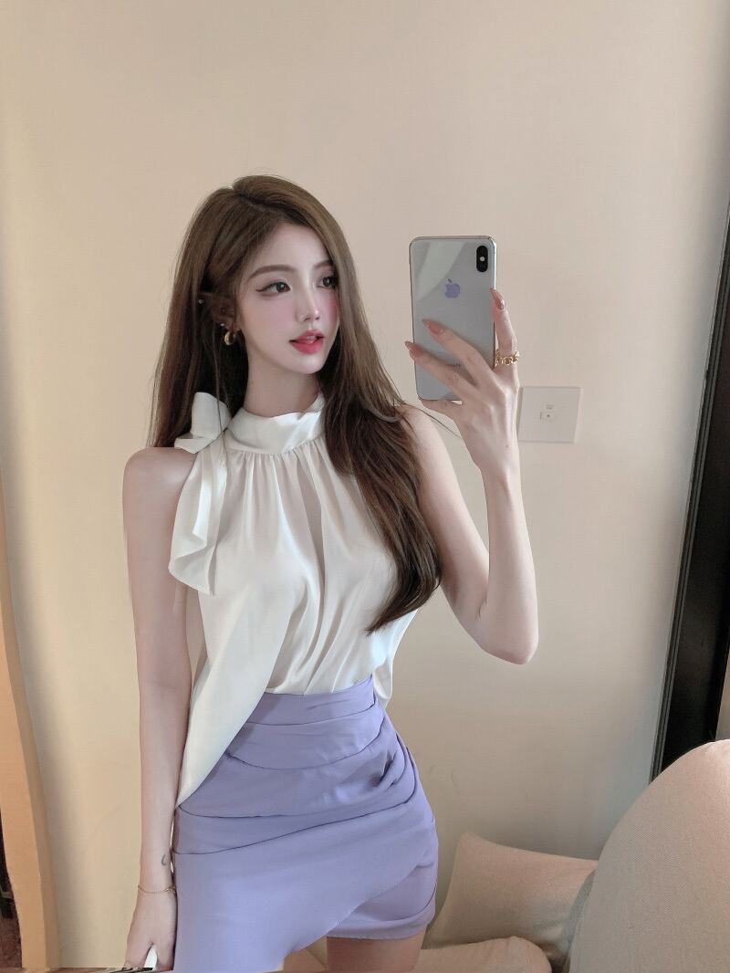 サマースタイルルーズノースリーブトップス リボン 夏物 フラワークラフター4808676913
