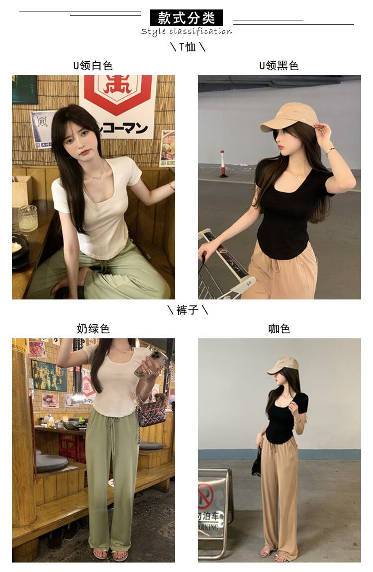 色:UカラーホワイトTシングルピース,uカラーブラックtシングルピース,一枚のコーヒー色のパンツ,ミルクグリーンパンツ一枚
