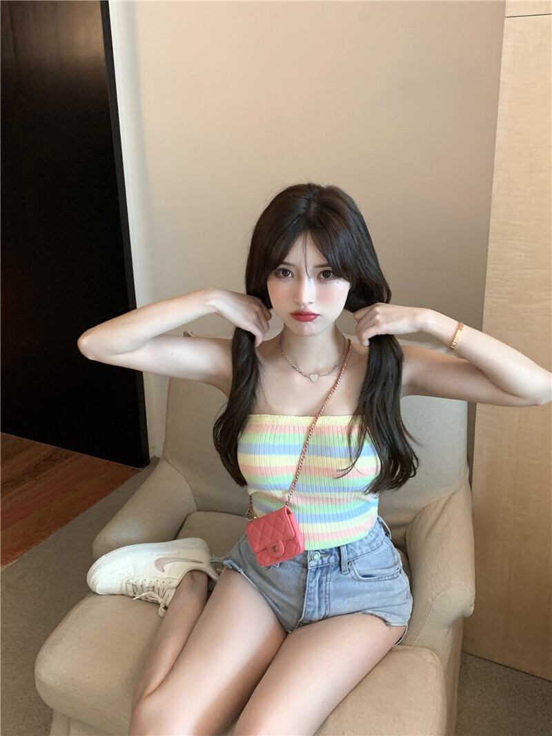 ストライプトップス サマーレッドショート 夏物 フラワークラフター73811967228