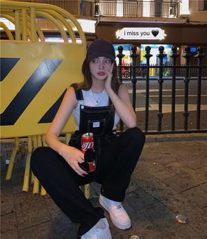 ラインオーバーオール サマーワンピースパンツ ハイウェストウェストルーズワイドレッグ 夏物 ワイドパンツ フラワークラフター4926848442