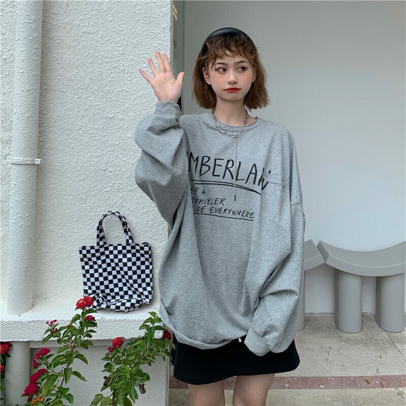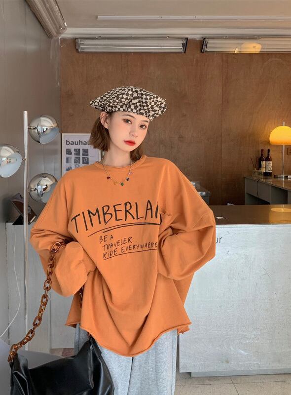 レッドプリントセーター レディースオータムルーズトップス ロング 秋物 フラワークラフター35914789259