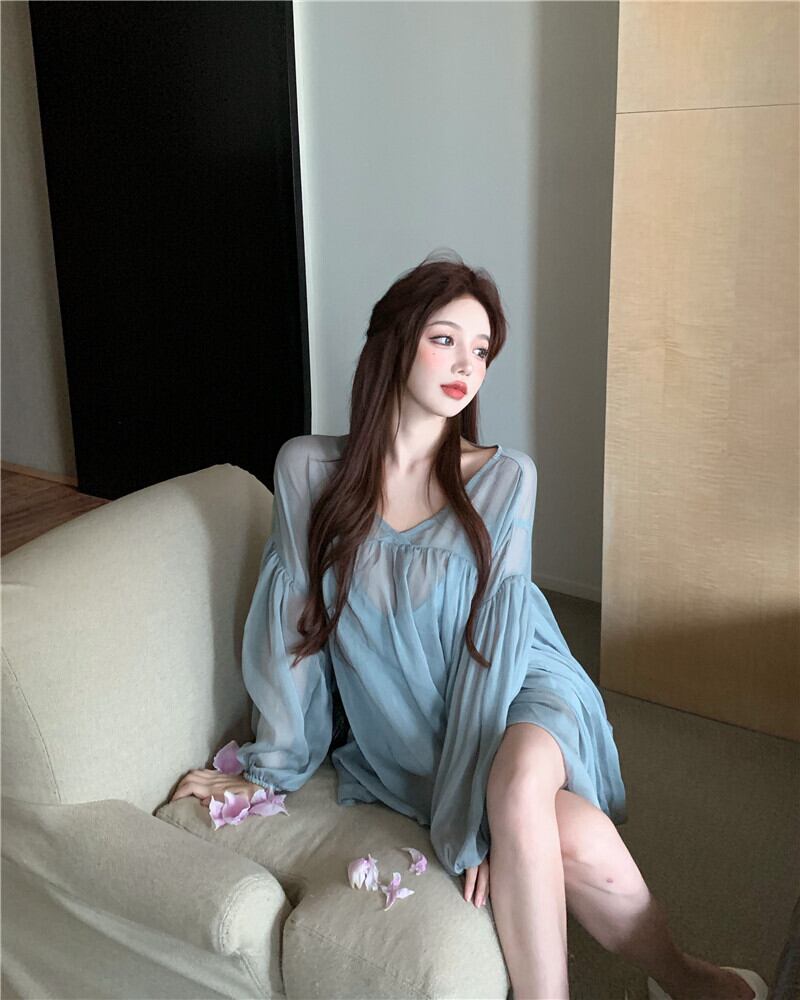 色:ヘイズブルーシフォンシャツ