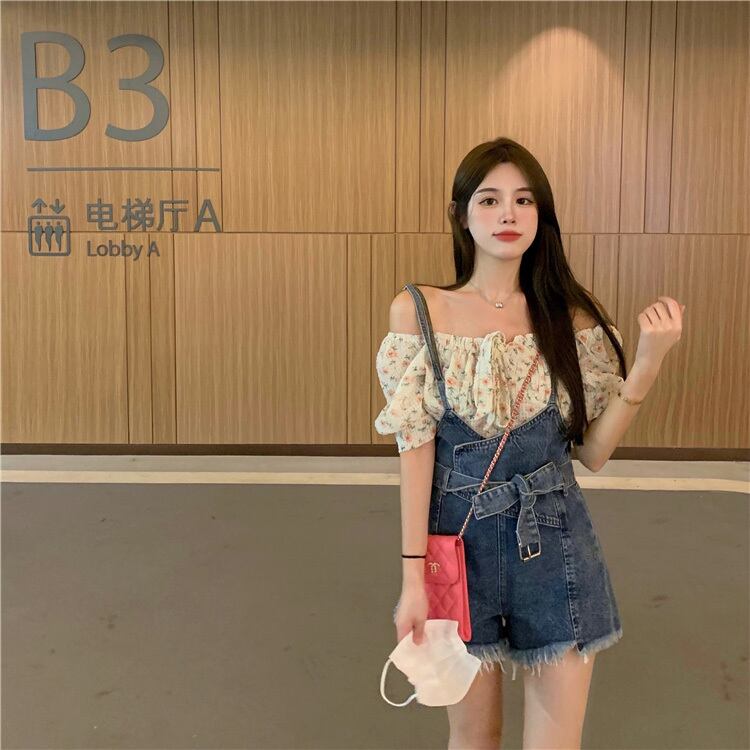 ショーツ サマースタイルハイウェストウェストルーズワイドレッグパンツ 夏物 ブルマー ワイドパンツ フラワークラフター41865776801