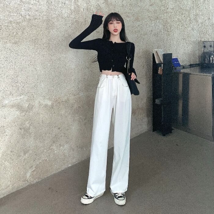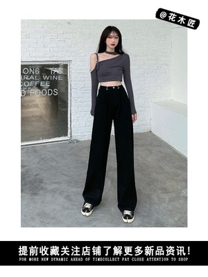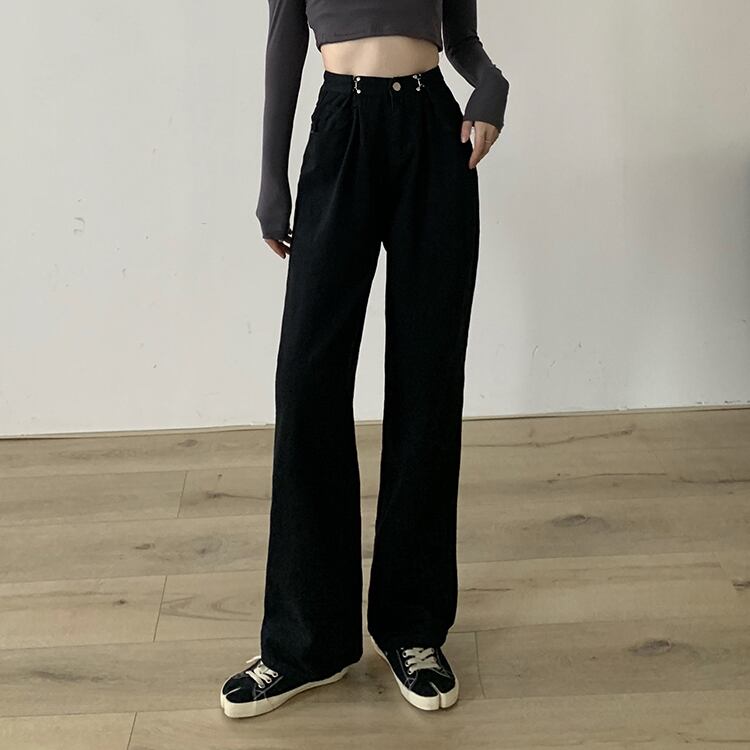 ブラックジーンズ スプリングルーズカジュアルパンツ ハイウェスト 春物 フラワークラフター13266163841