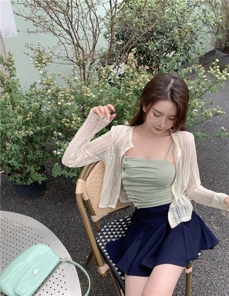色:スリングシングルピース,ワンピースアプリコットカーディガン
