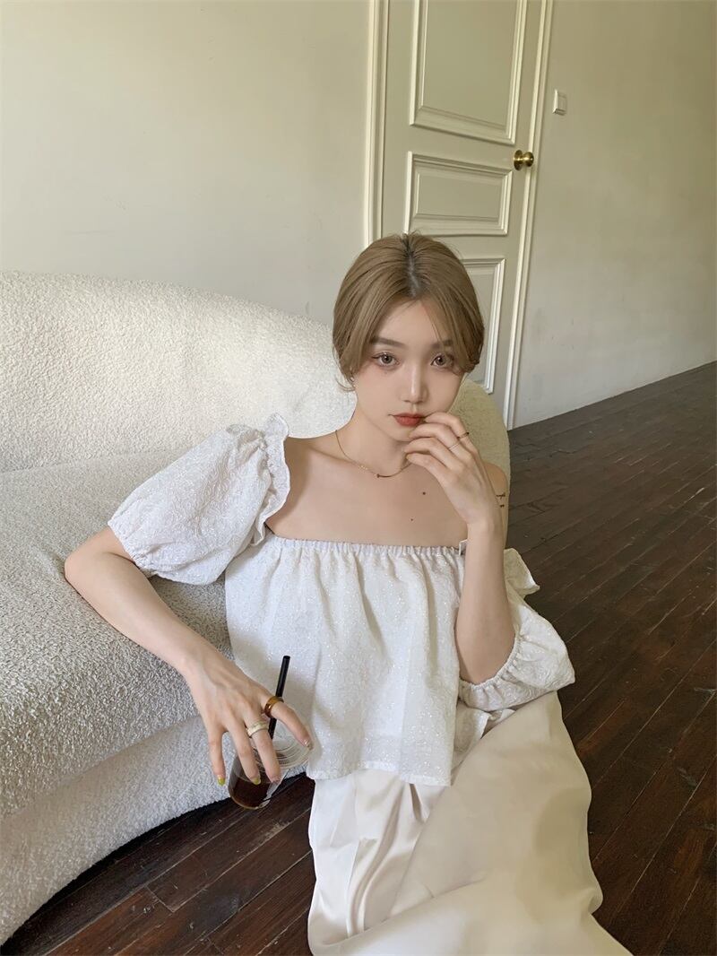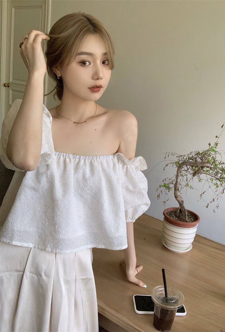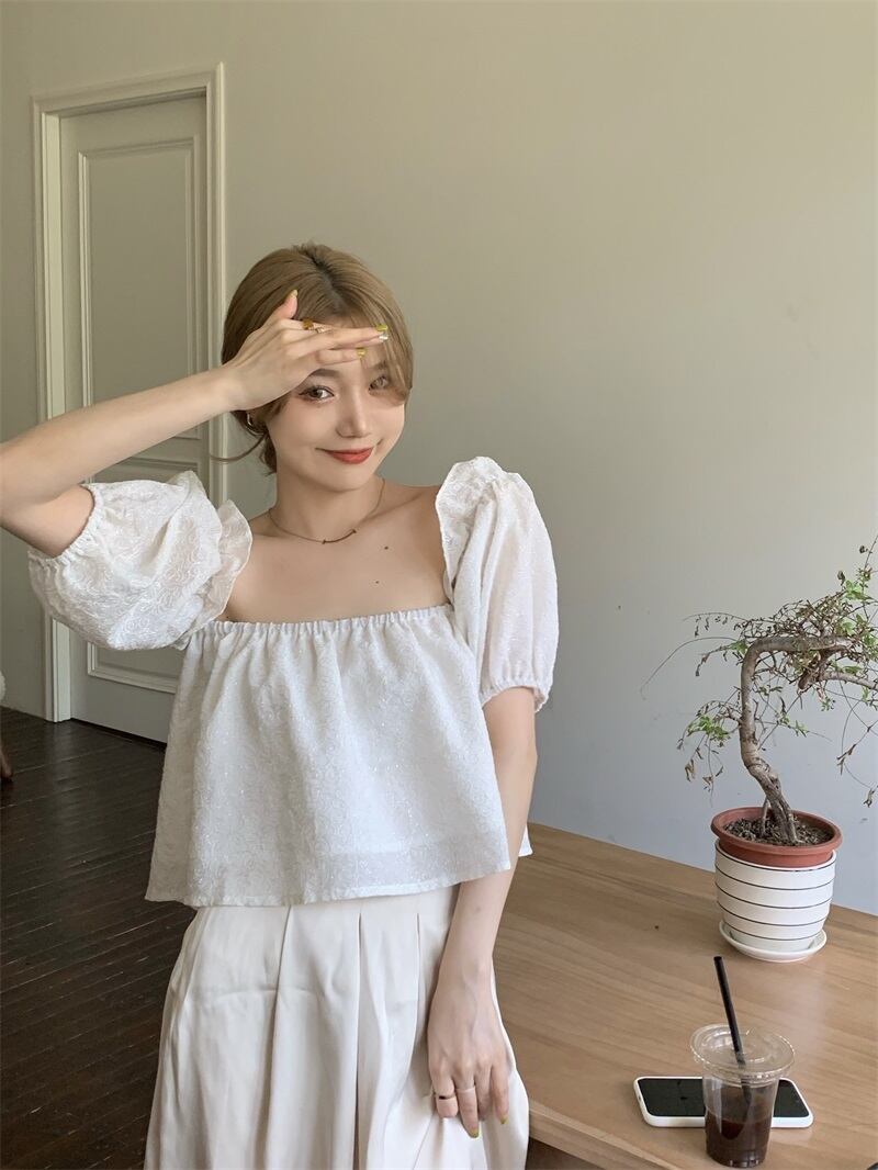 スリーブシャツ サマーレッドホワイトショートトップス 夏物 フラワークラフター28590921692