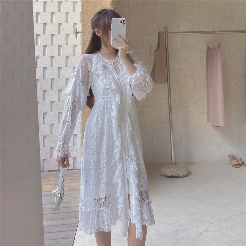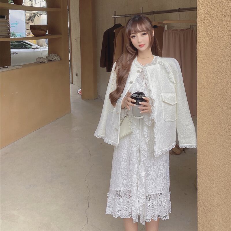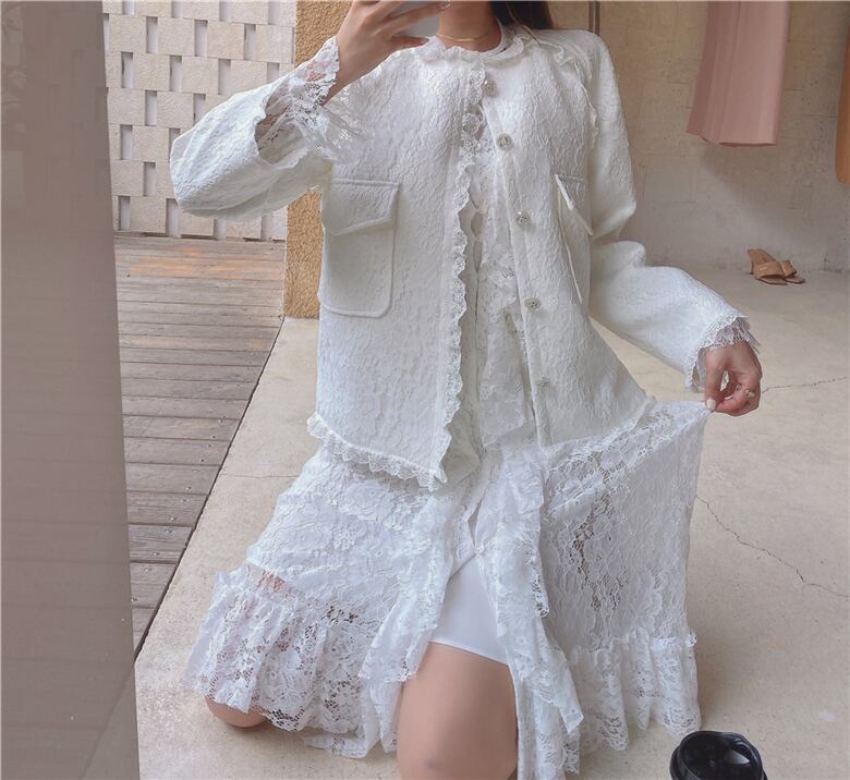 ホワイトレースジャケット オータムトップス ロング 秋物 フラワークラフター48330453526