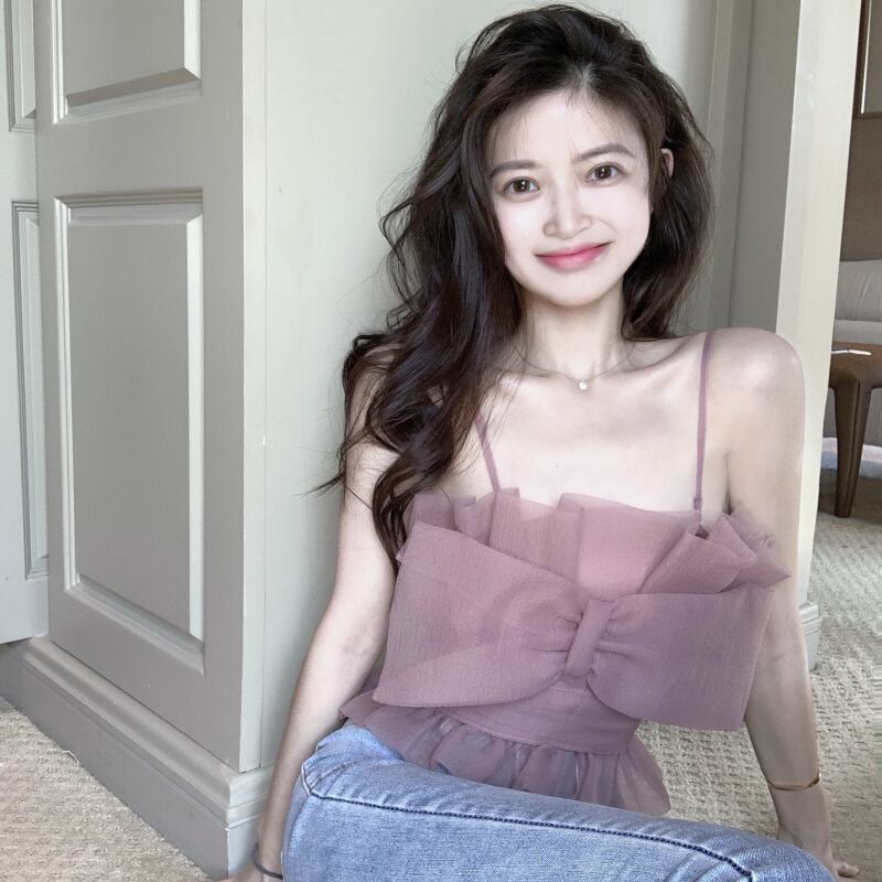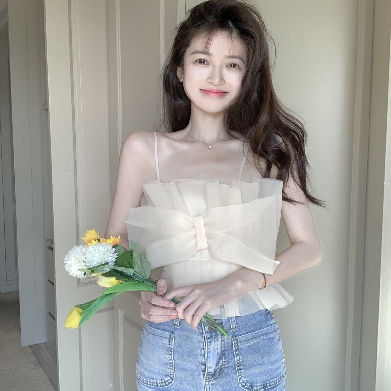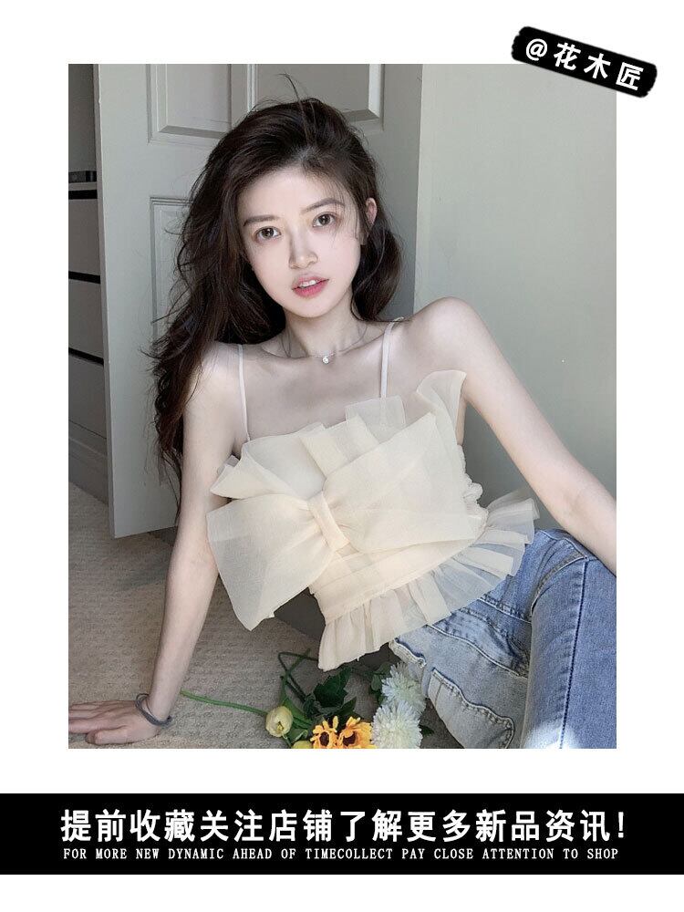 サマースタイルスリムショートトップス レッド リボン 夏物 フラワークラフター43614235817