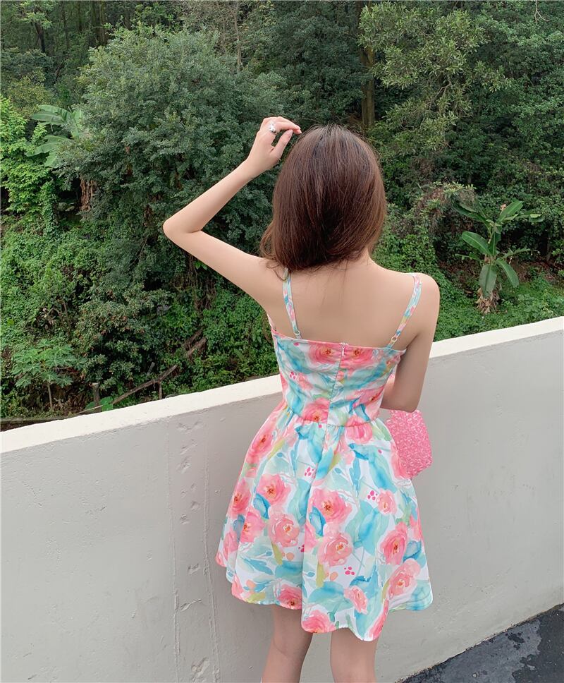 フローラルドレス サマースタイルVネックプリーツウェストスカート 夏物 花柄 フラワークラフター47514100364