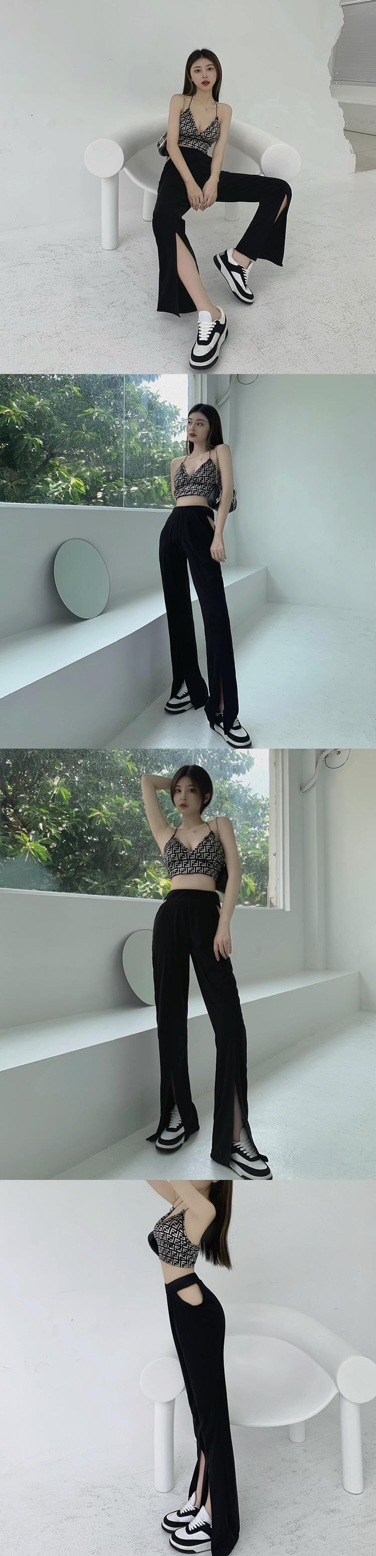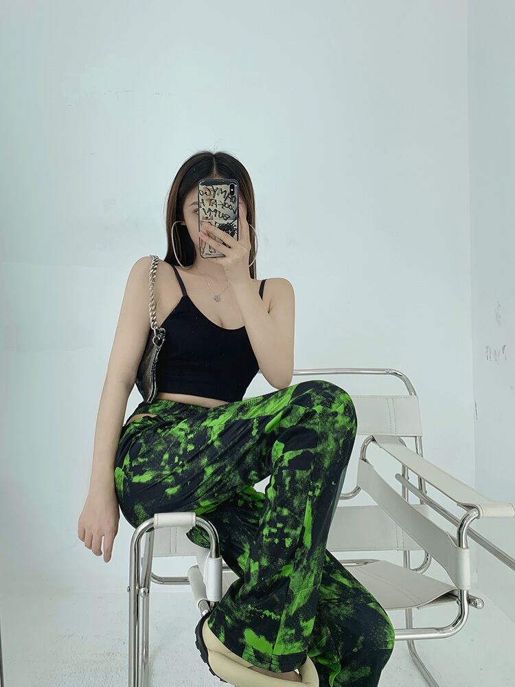 ブラックカジュアルパンツ サマーハイウェストレッド 夏物 フラワークラフター73546830678