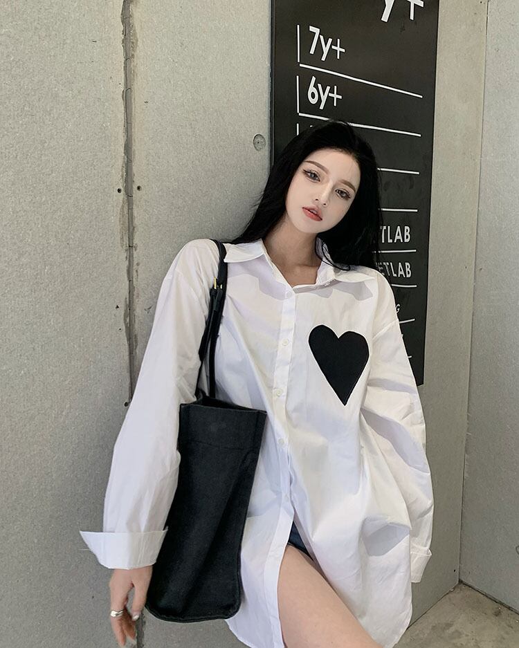 ホワイトシャツ スプリングオータム刺繍ルーズトップス 春物 秋物 フラワークラフター99795084147