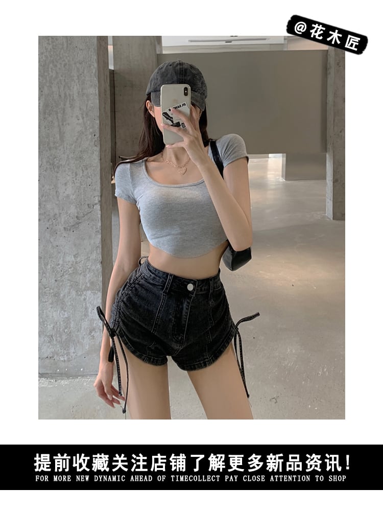 ギャザーショーツ サマースリムハイウェストウェストパンツ 夏物 ブルマー フラワークラフター37814031463