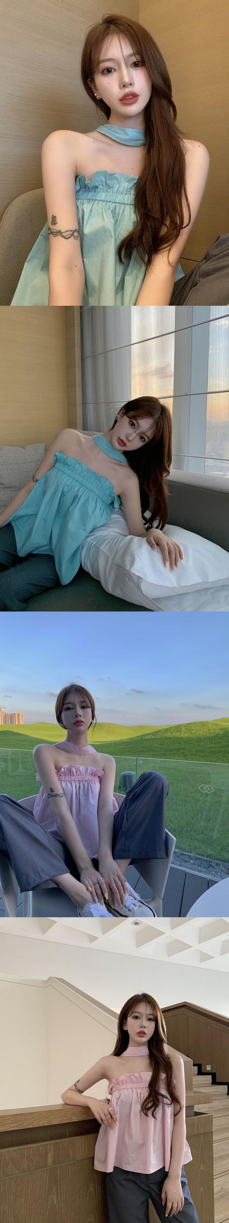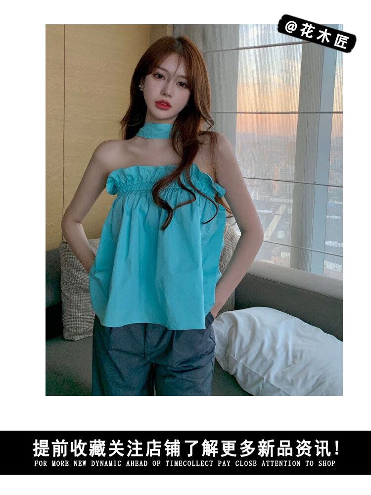 ホルターサマールーズストラップレスショートノースリーブトップス 半袖 ハーフスリーブ 夏物 フラワークラフター7390444405
