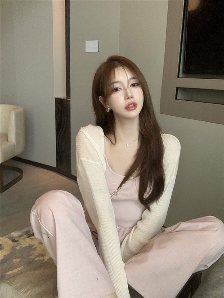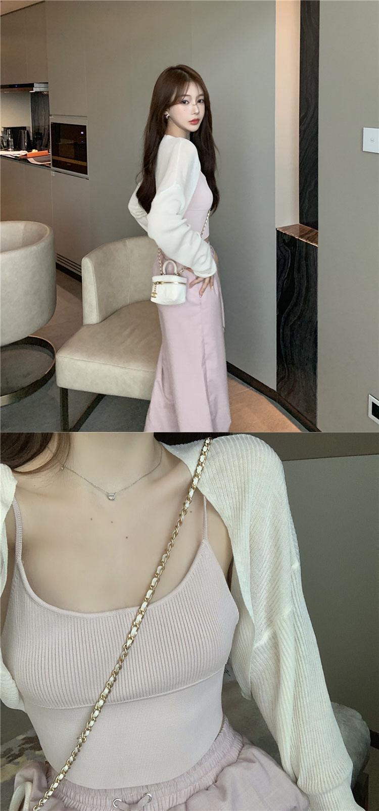 色:カーディガンジャケットワンピース,ワンピーススリングトップ,ピンクのパンツ
