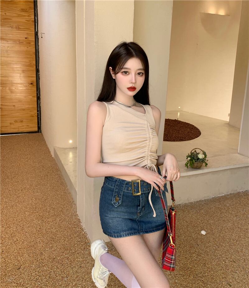 色:カーキドローストリングベスト,デニムスカートパンツワンピース