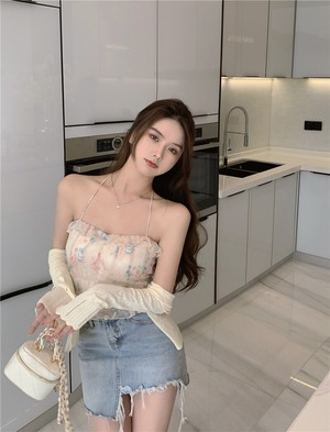 フローラルサマースタイルウェストシフォンクロップドトップス 夏物 花柄 フラワークラフター20721576633