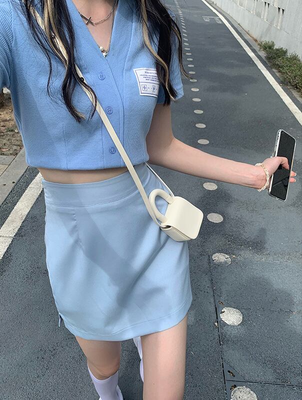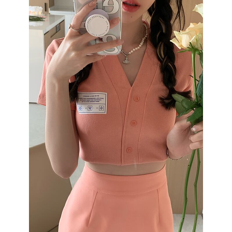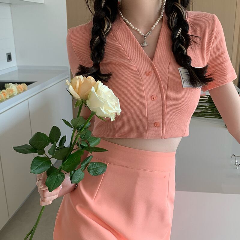 レディースサマーVネックショートトップス スカート 大人ガーリー スウィート キュート カジュアル 夏物 フラワークラフター75790279417