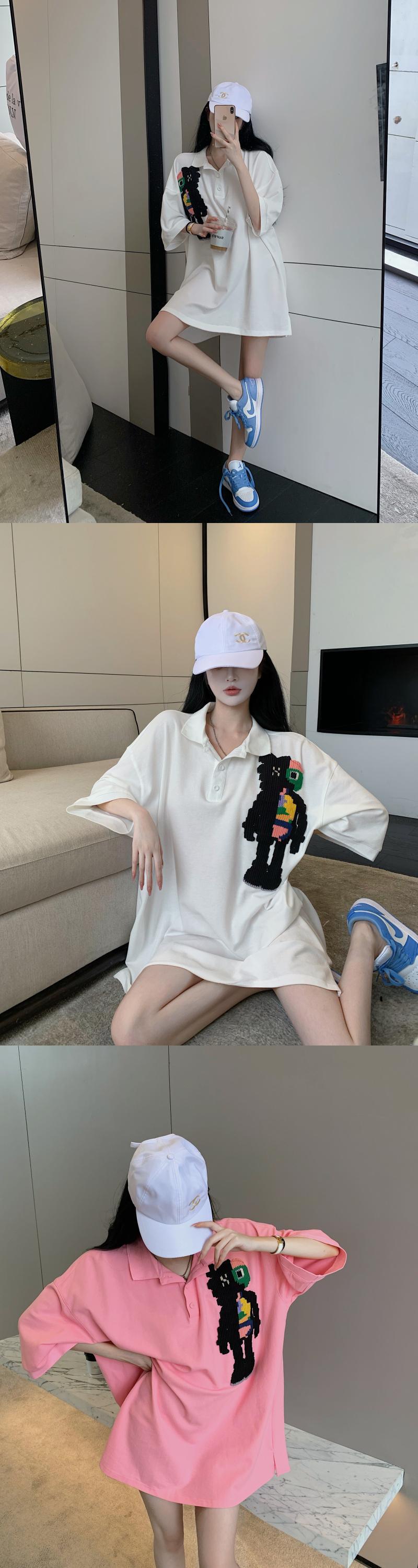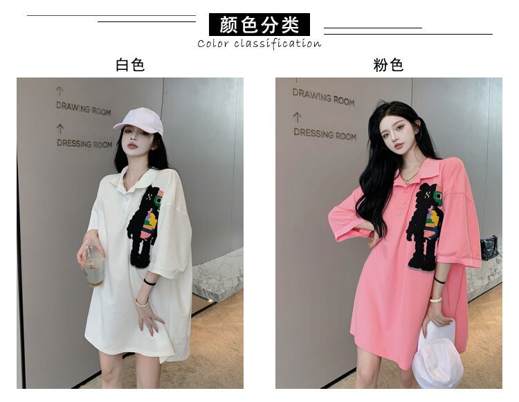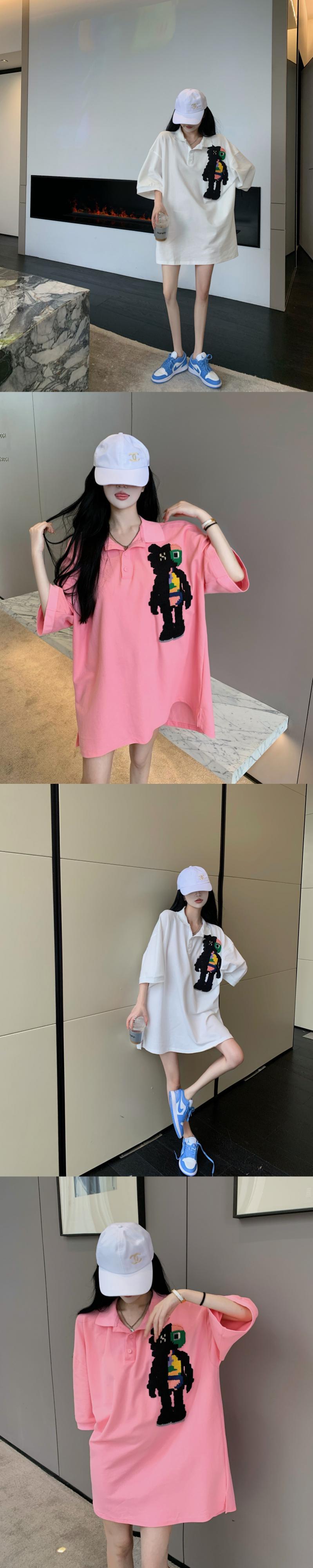 カラーTシャツ サマールーズトップス ピンク 夏物 フラワークラフター689332983