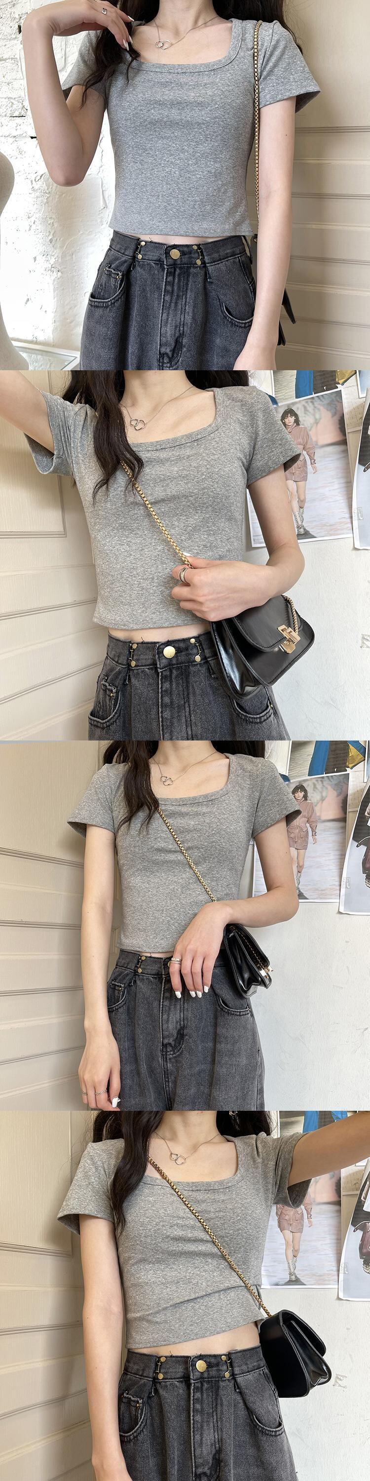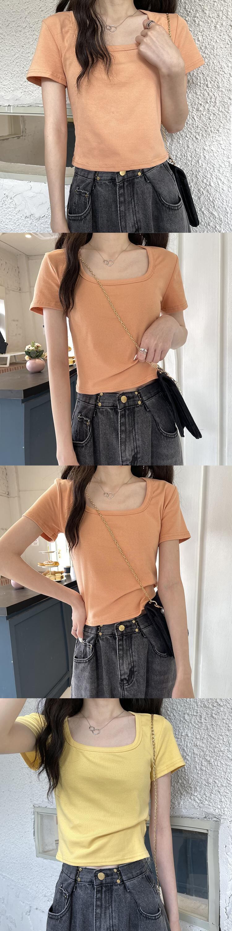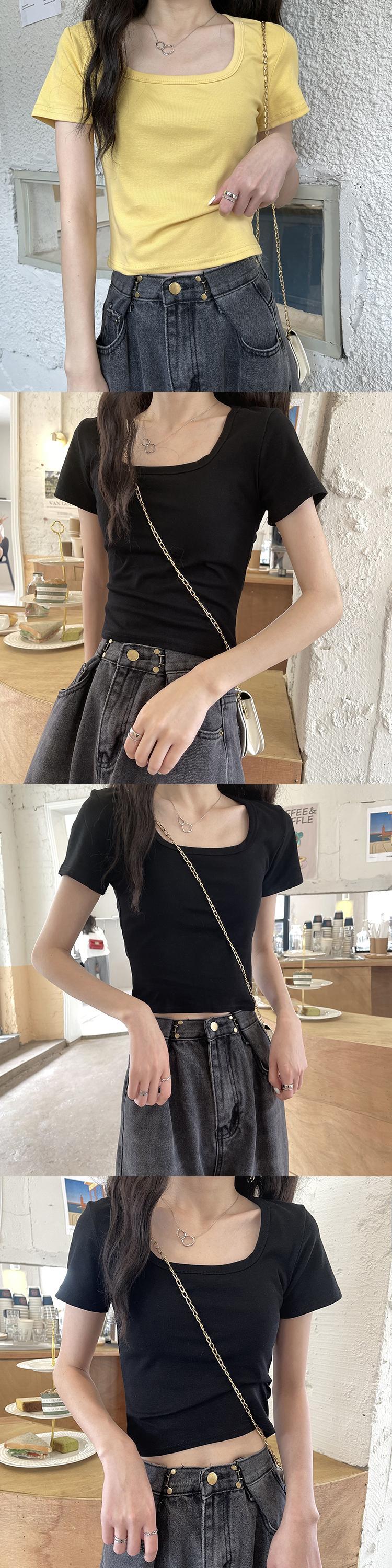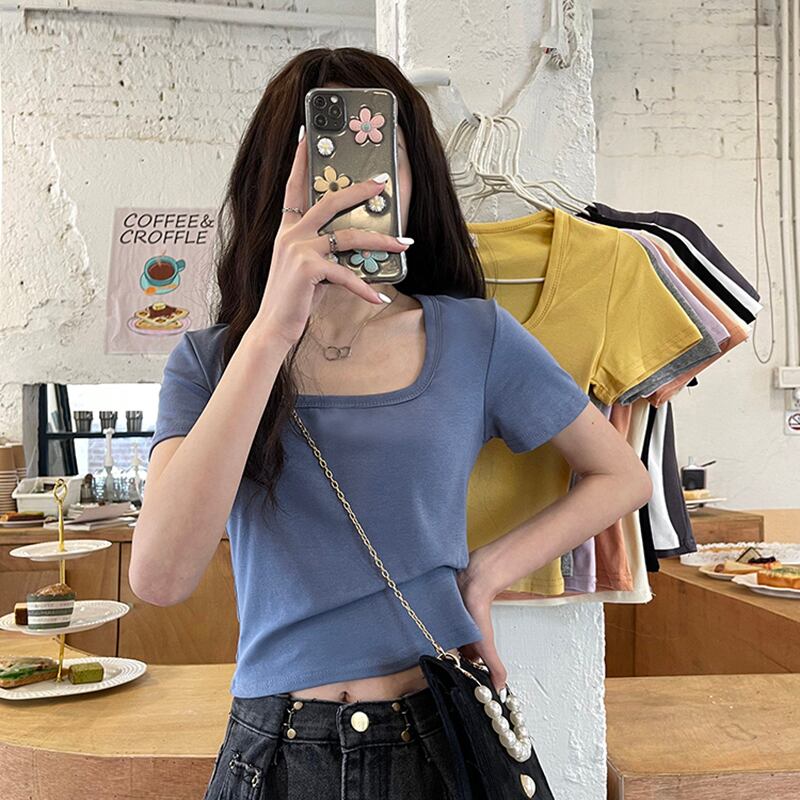 ショートTシャツ サマースリムレッドトップス 夏物 スクウェア フラワークラフター12437143808