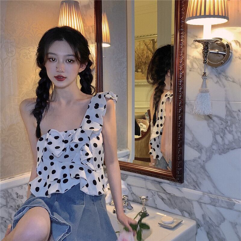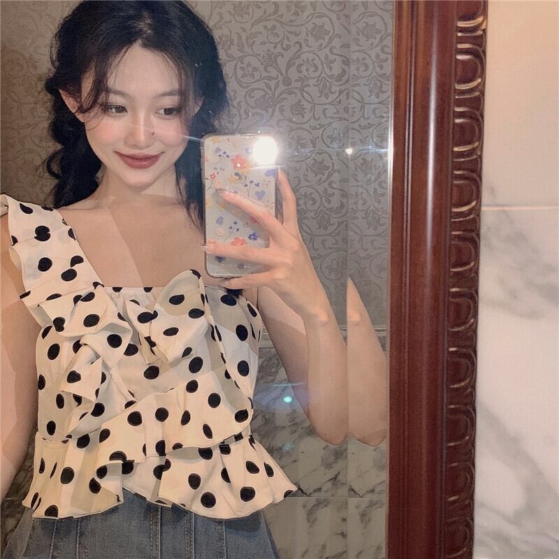水玉ノースリーブシャツ レディースサマースリムクロップトップ トップス 夏物 フラワークラフター90310377825
