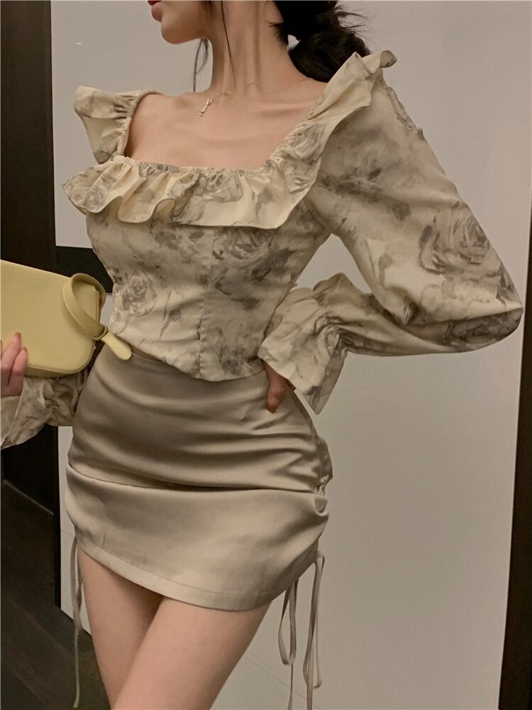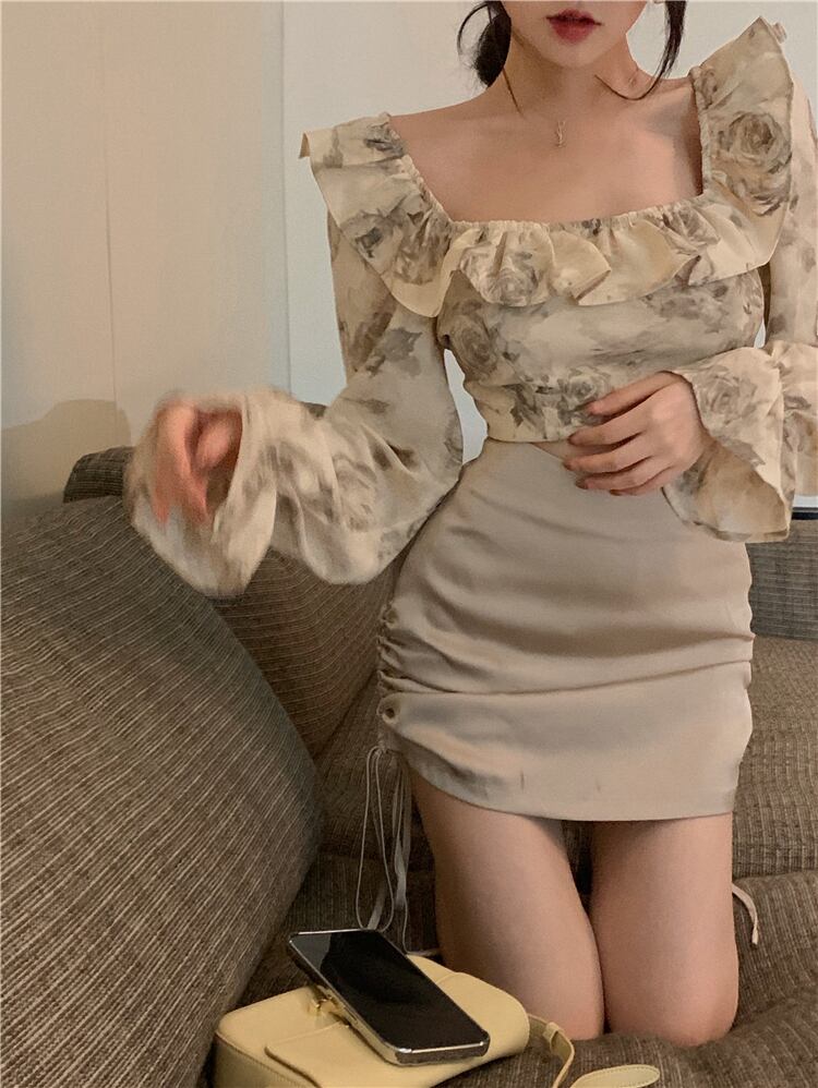 色:カーキトップス,ブルートップシングルピース,カーキスカートワンピース,ブルースカートワンピース