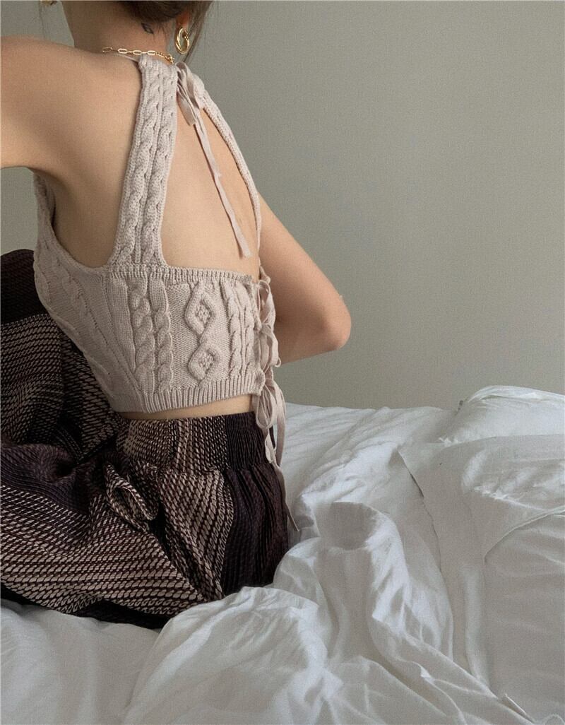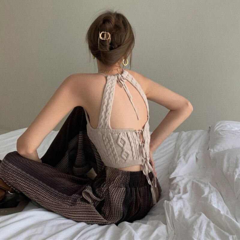 ホルターニットサマーレッドバックショートトップス 夏物 フラワークラフター88300461945