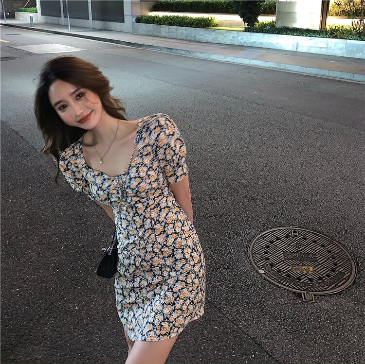フローラルドレス スプリングサマースタンダードスタイルスカート ウェストバック レトロ 春物 夏物 花柄 フラワーデザイン フラワークラフター81584057574