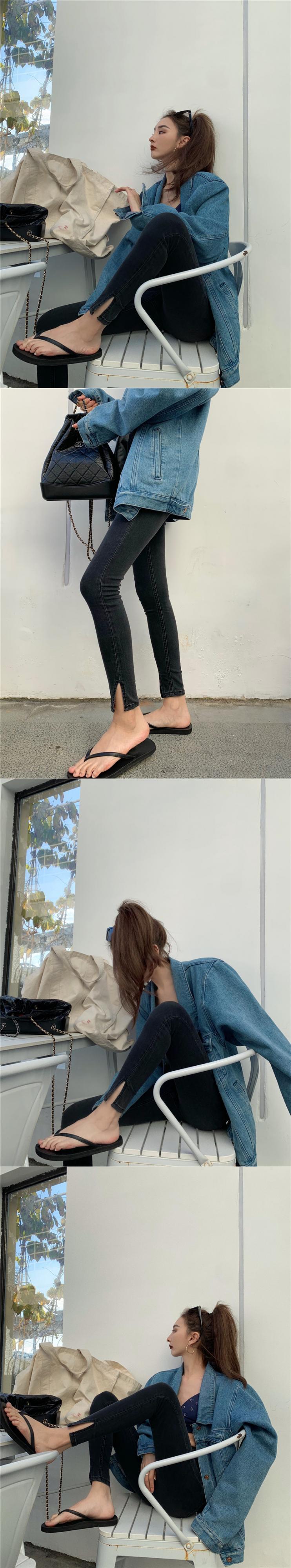 ウェストジーンズ レディースサマーストレッチパンツ スリットクロップド エラスティック 伸縮 夏物 フラワークラフター2519909651