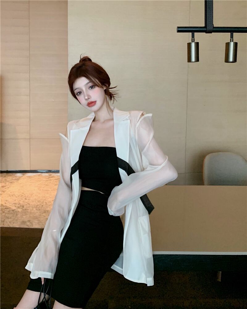 ブレザー サマー薄手シャツ ルーズロングトップス 夏物 フラワークラフター11039162292