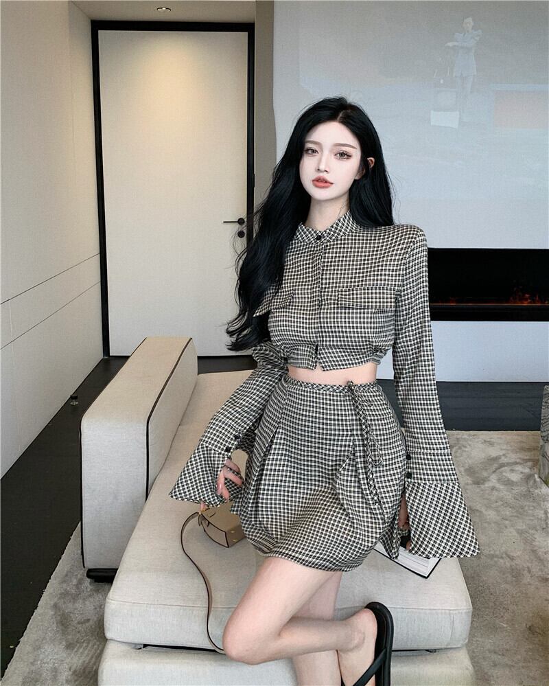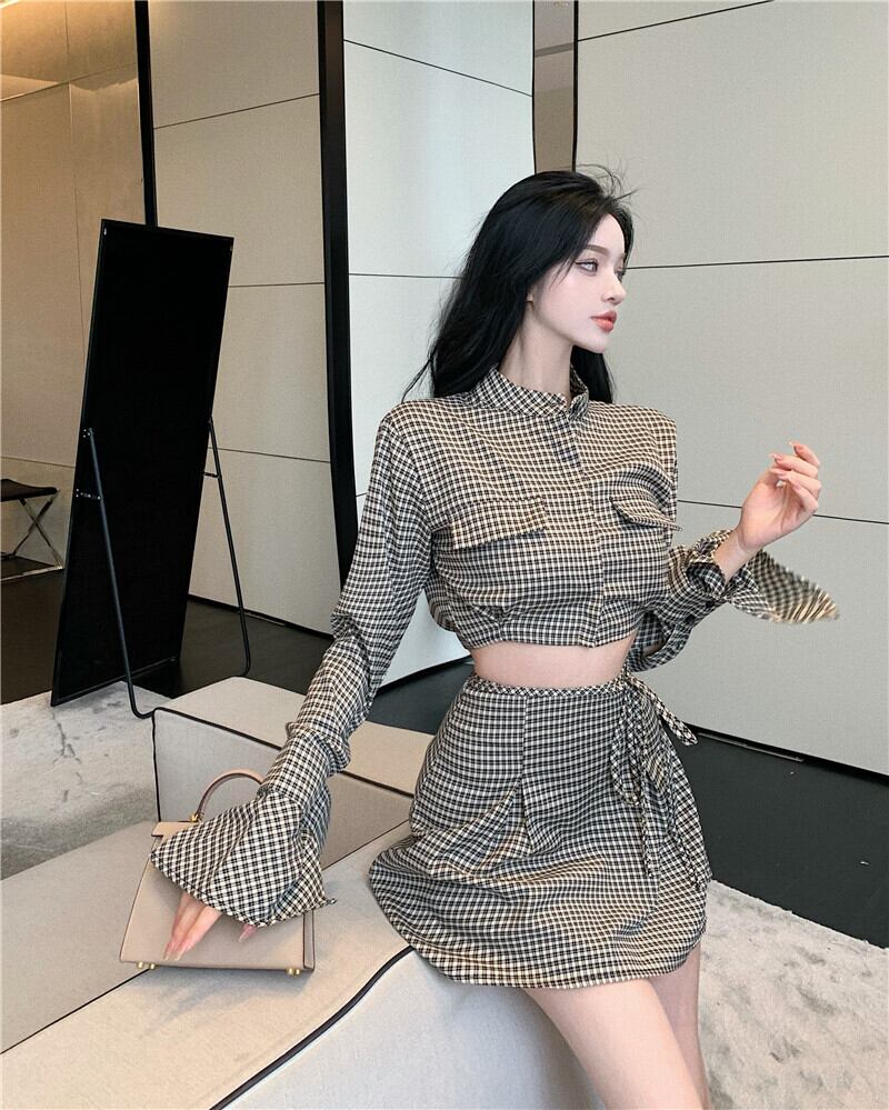 格子柄シャツ レディースサマークロップトップ トップス ロング 夏物 フラワークラフター72984831273