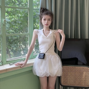 色:ホワイトトップシングルピース,白いハーフスカートワンピース