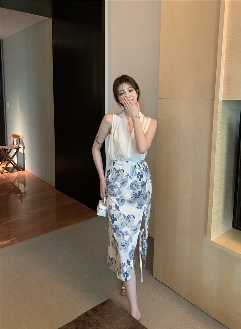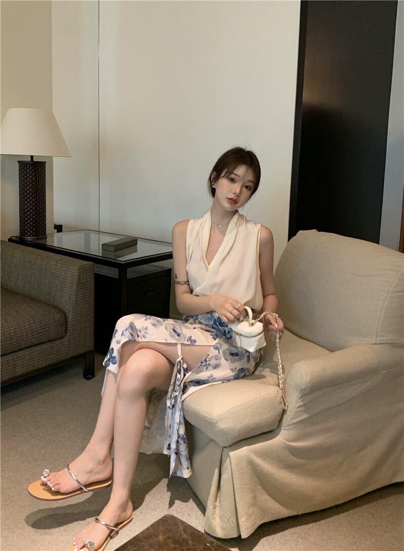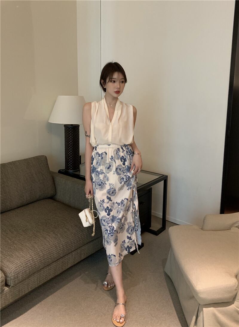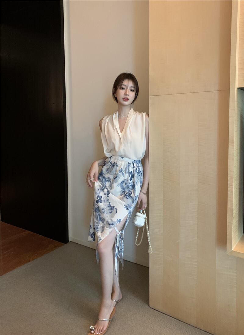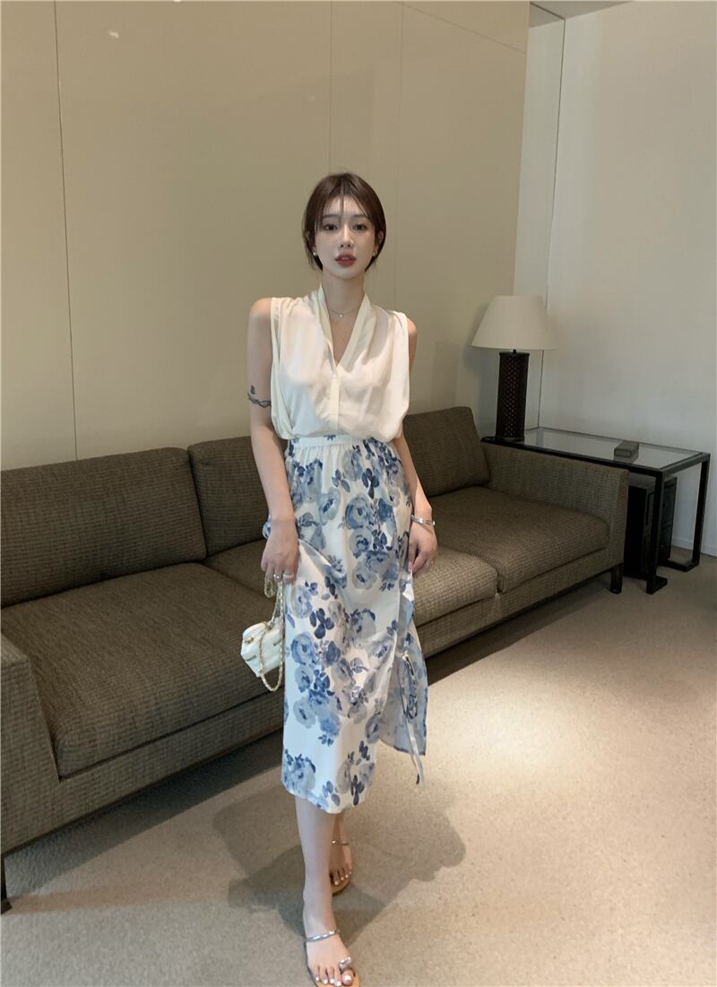 色:フローラルスカートワンピース,アプリコットベストワンピース