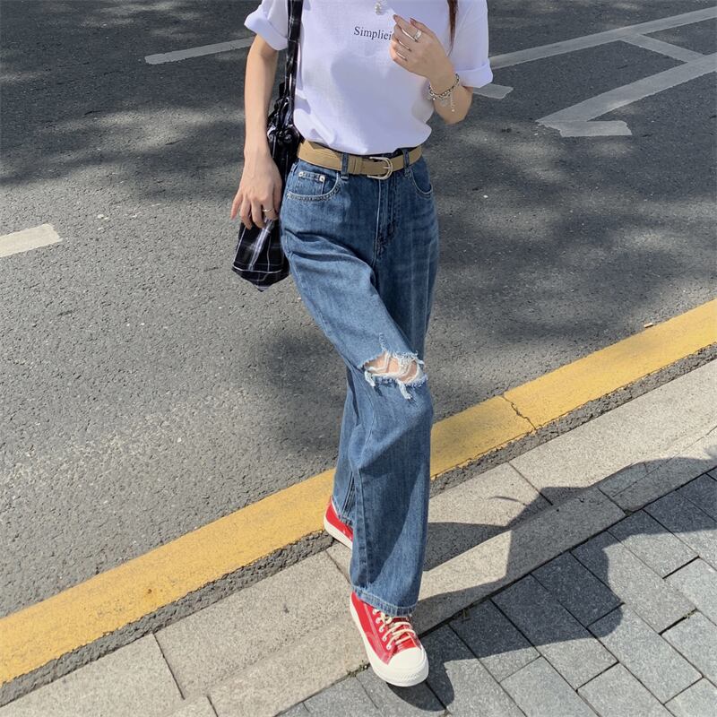 ジーンズ レディースサマースタンダードルーズパンツ 薄手ハイウェストロング レトロ 夏物 フラワークラフター86223181416
