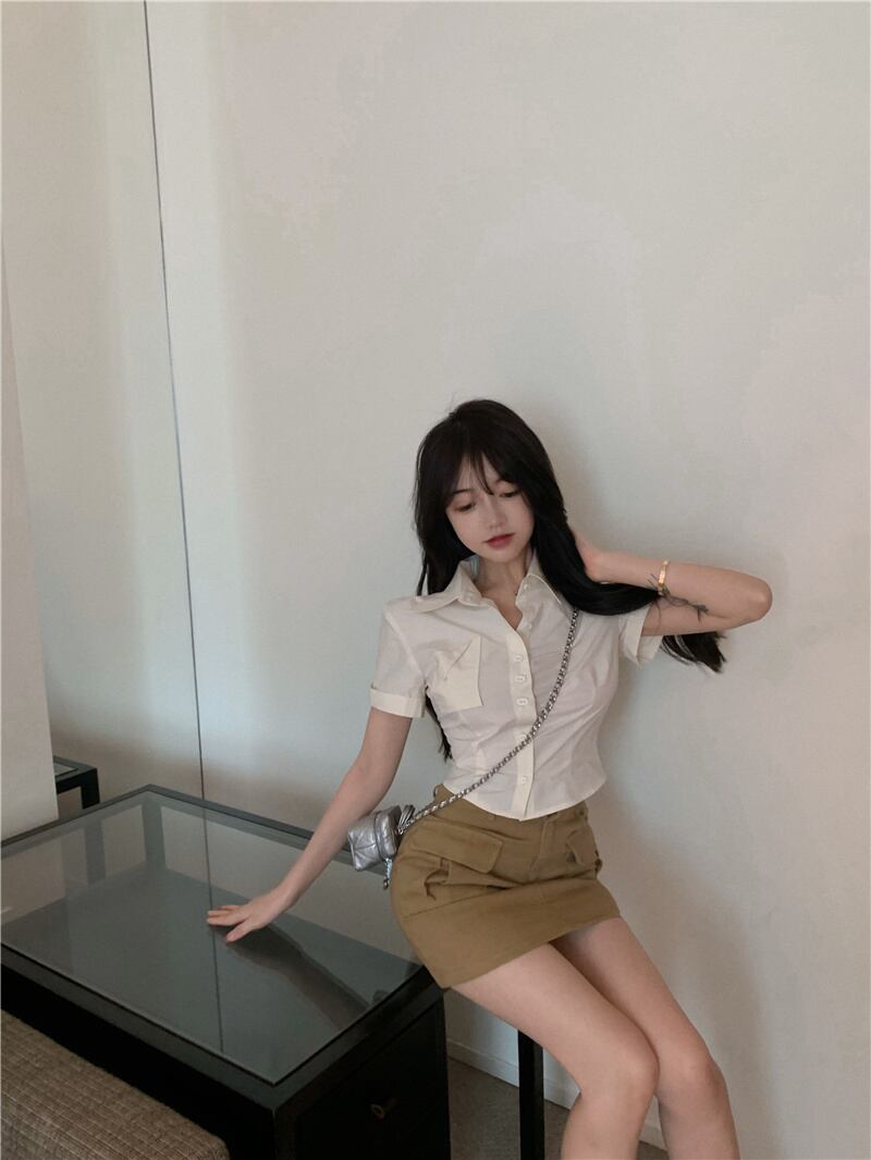 ショートシャツ サマーレッドスリムトップス 夏物 フラワークラフター39797036837