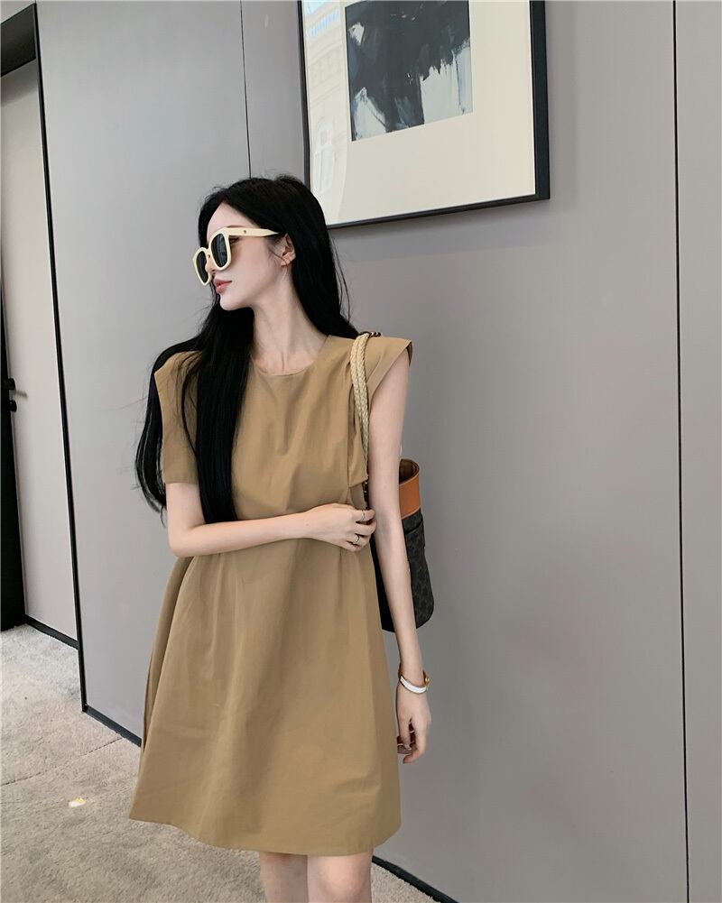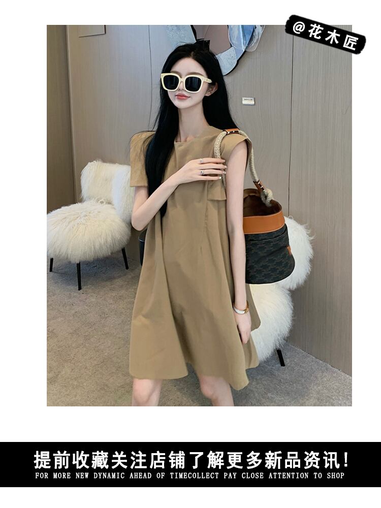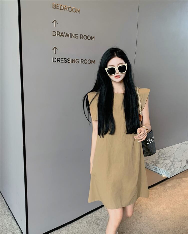 カーキノースリーブドレス サマースタイルルーズAラインスカート 夏物 フラワークラフター17476727784