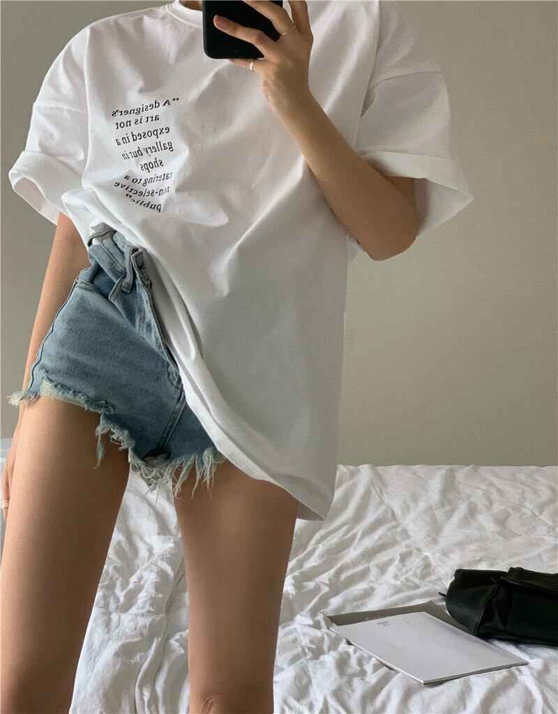 ホワイトTシャツ サマールーズプリントトップス 夏物 フラワークラフター91698109557